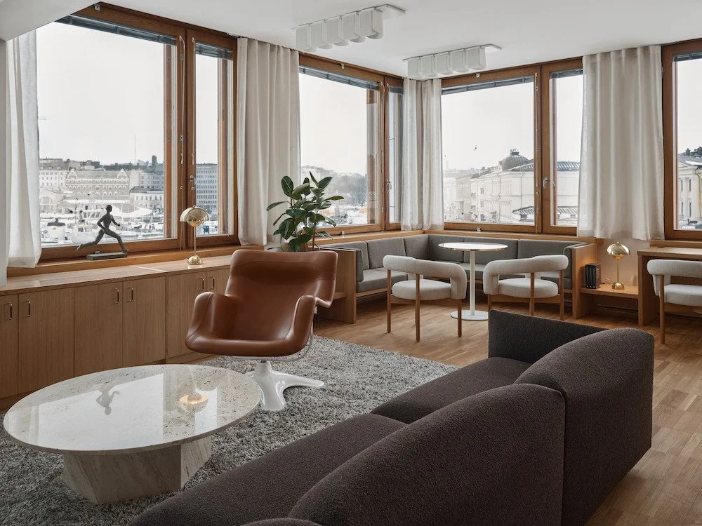 One of the prominent highlights of the new headquarters is the expansive, semi-public lounge, offering sweeping views of Helsinki Market Square and the adjoining sea. This lavish lounge space is intended for use by both employees and visitors alike. The overall design of the premises carefully considers the unique historic value of the building.