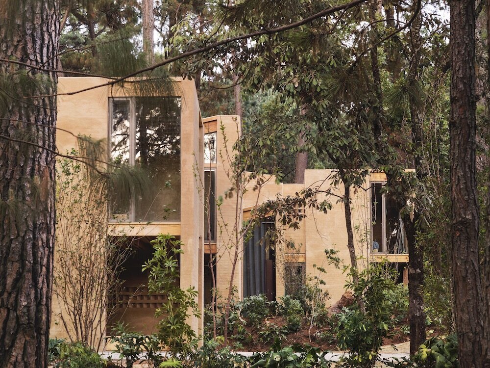 In a vast forest area in Valle de Bravo, Mexico, Taller Héctor Barroso has built five weekend houses, which adapt to the site’s topography. They are surrounded by tall pine trees (hence the name… between pine trees) that echo the sound of the wind.