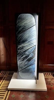 Ini Archibong collaborating with Aomori artisans using the traditional Tsugari-Nuri lacquerware. Artifact #VII blends traditional craftsmanship with futuristic design, creating a sound-emitting sculpture that represents a fusion of ancient skills and modern technology.