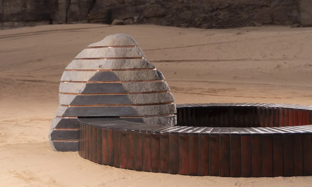 Alamoudi reframes the ordinary bench as a theatrical, landscape-inflected object. Cast in sand to capture the strata and fractures of AlUla’s cliffs, her benches and stools invite sitting, climbing and play, while also functioning as sculptural markers of time and erosion. The work is playful without losing seriousness: it proposes that urban furniture can be a catalyst for encounter and memory, and the larger masterplan she sketches suggests these elements could activate public space at scale. It’s an imaginative, site-responsive approach that balances whimsy with architectural thinking.