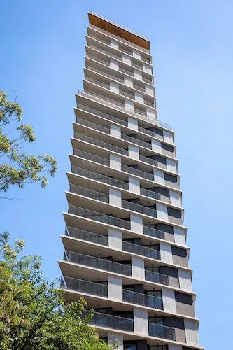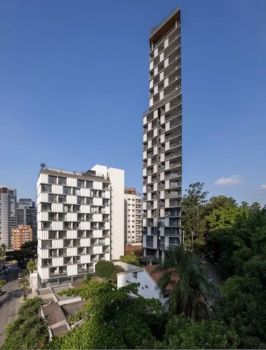 TRIPTYQUE’s fourth project for IdeaZarvos! in Vila Madalena, São Paulo, Onze22 seems to emerge from a green belt, as if it were a dominant living tree.