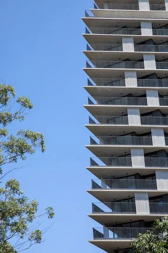 The new project by Trityque, a French-Brazilian architecture and urbanism agency, is a residential building transcending the classic tower block as a set of overlapping, suspended slabs, interspersed with glass walls.